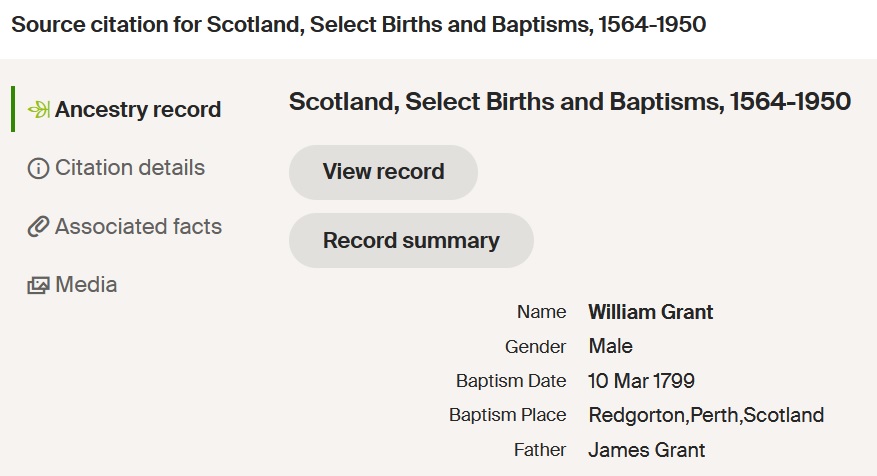 Grant is shown as the father of both William Grant and Mary Grant on