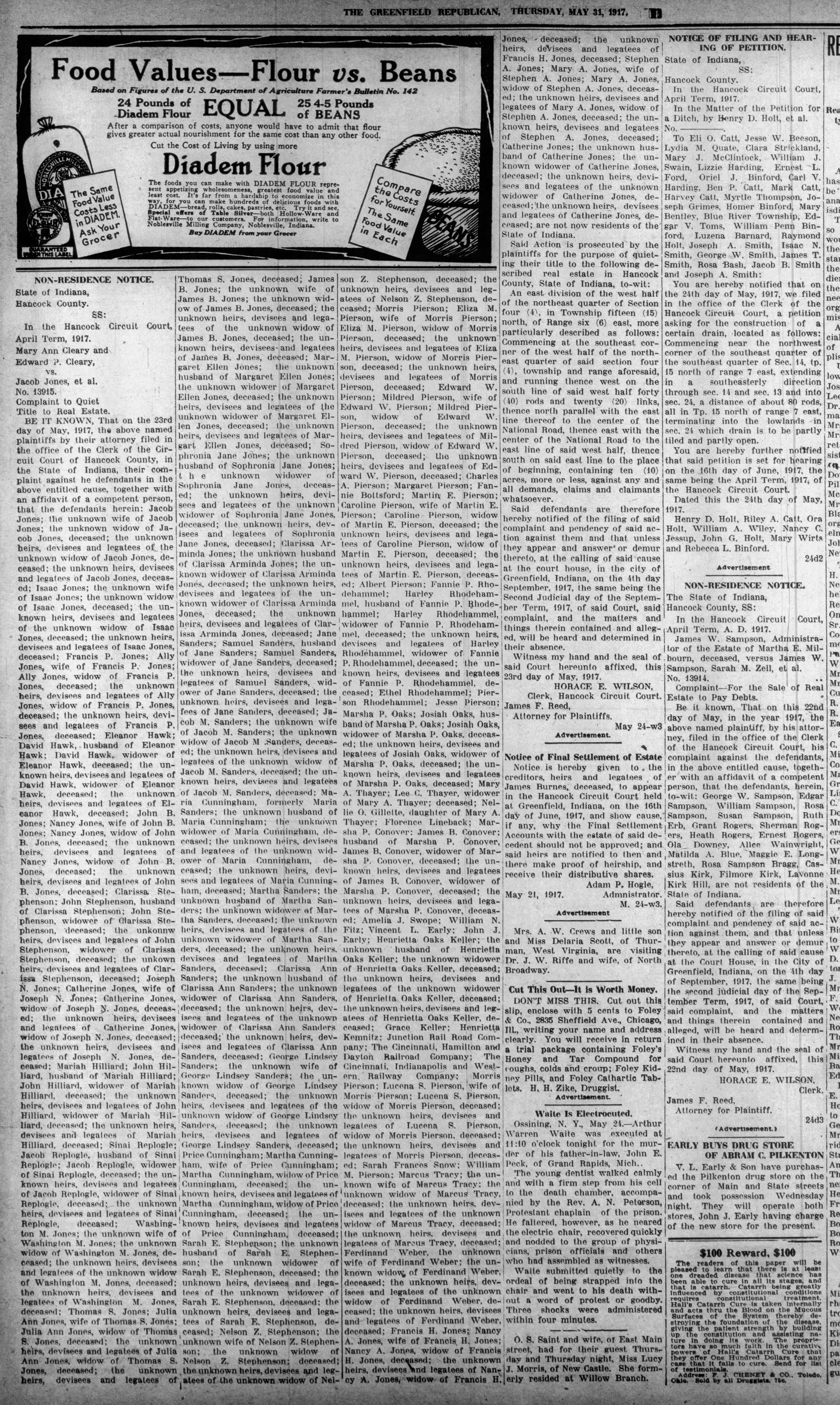 On May 31, 1917 in the "Greenfield Republican" newspaper in Hancock,